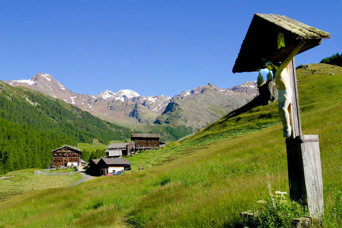 Wanderung über den Wieshof zur Bergl Alm (2.214 m), durch einen alten Zirm & Lärchenwald, mit Blick auf den Vernagtsee & Similaun ( 3607 m ), wir empfehlen eine Einkehr, probieren Sie die typischen Gerichte