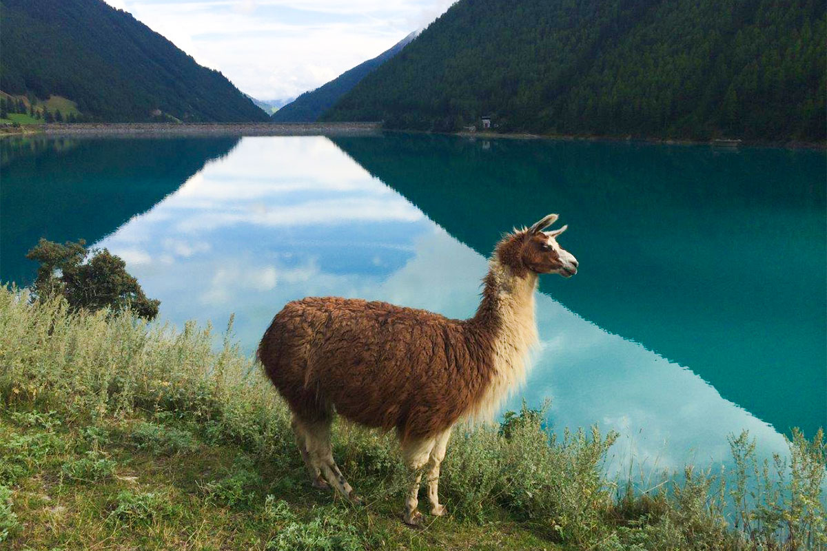 Schöne Wanderung um den idyllischenVernagtsee.,mit einer spektalulären Hängebrücke und Begegnung mit den sympatischen, zahmen Lamas