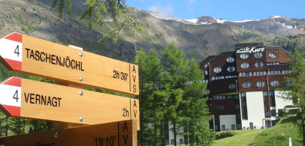 Alpine Wanderung mit herrlichen Panoramablick auf die Wildpitze, Weisskugel, Ortlergruppe. Auffahrt in nur 6 Minuten mit der Panorama Gondelbahn auf Grawand (3212 m ) anschließend Abstieg am Rande des Hochjoch Gletschers zur Schutzhütte Schöne Aussicht ( 2842 m ) mit Einkehrmöglichkeit, und weiter auf dem Wanderweg Nr.3 bis nach Kurzras
